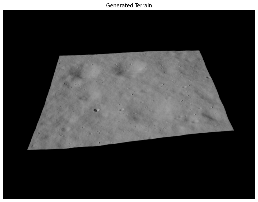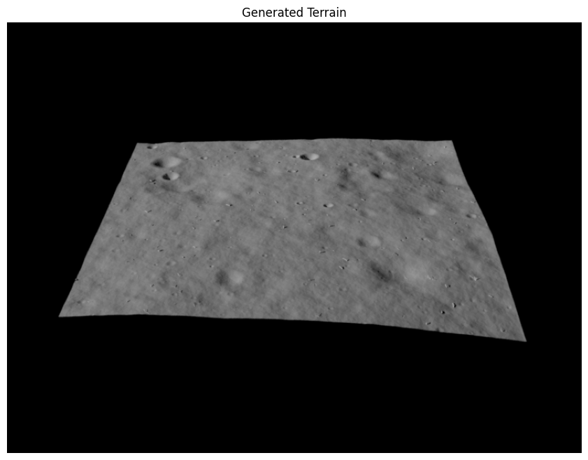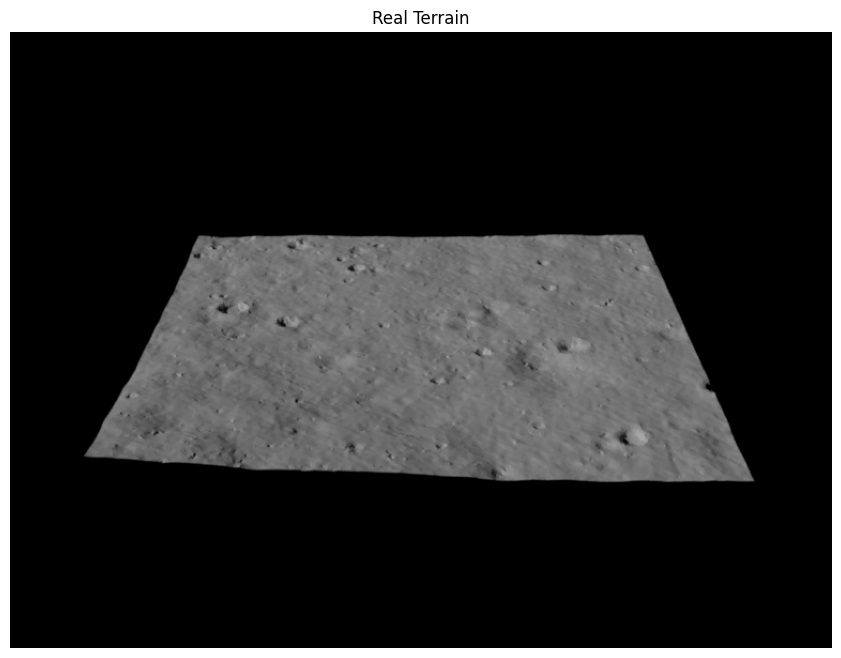 To ensure realism, the generated terrain was validated against real lunar topographic statistics taken from the LROC RDR Data Portal. Note that the highest resolution data provided by the data portal is 2 meters per pixel, which motivated the creation of this generator to have access to data at 1 meter per pixel. The generator can produce distinct landscapes representative of the two key lunar types: smooth, basaltic Mare terrain and rugged, heavily-cratered Highland terrain.