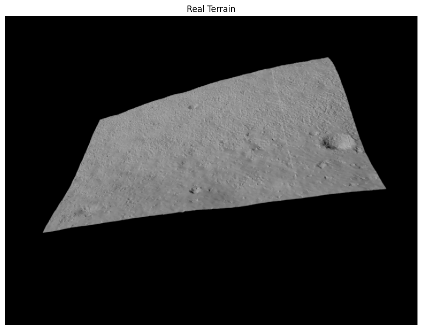A primary goal of this project was to generate synthetic terrain that is statistically and visually indistinguishable from real lunar topographies. Note that the terrains are created as 2d images (same as the LROC DTM data), and then later converted into meshes.