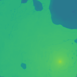 The model takes several inputs, including the terrain height map, a high-pass filtered version of the terrain, and a one-hot map of the transmitter’s location.